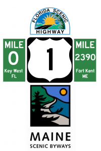 Once in the New England states, US Route 1 mostly stays near the Atlantic Coast, traveling through Connecticut, Rhode Island, Massachusetts, New Hampshire, and finally Maine. In Maine, it follows the Eastern edge, passing near the Easternmost point of Quoddy Head, and then continues along the US/Canadian border until reaching it’s terminus in Fort Kent, Maine.
